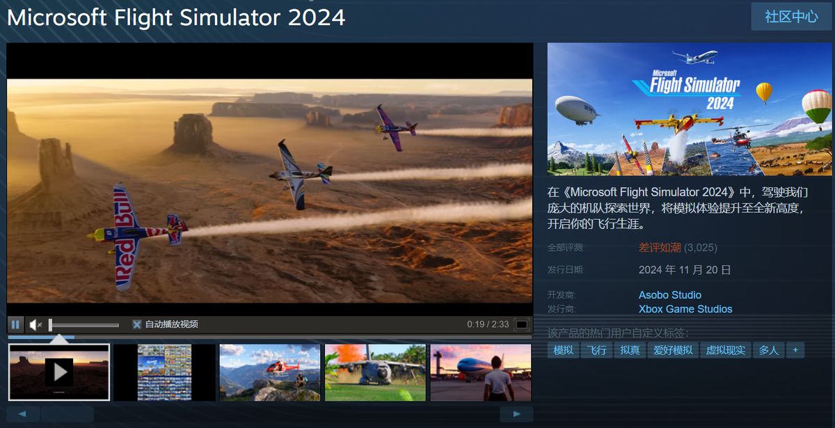 《微软模拟飞行2024》已经正式发售,目前这款游戏在Steam上遭到了众多的差评,好评率仅17%,有玩家表示不敢相信是一个有几十年经验的大公司制作的,很多玩家卡在加载界面无法进入。