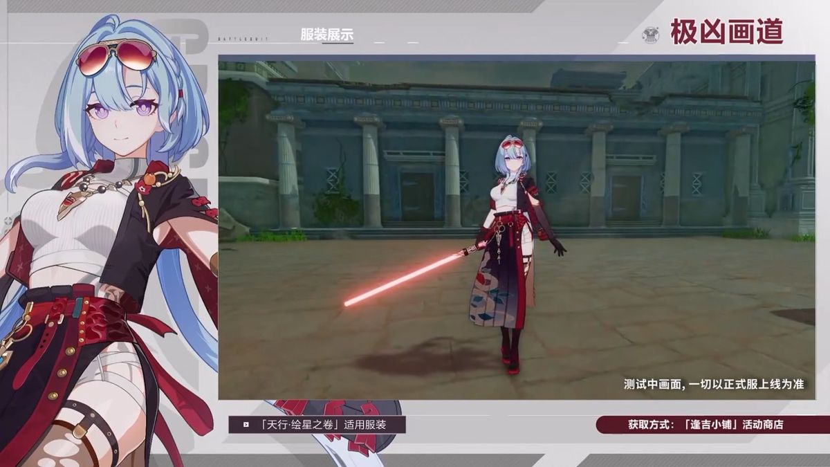7.6版本更新后至7月26日期间,「逢吉小铺」还将限时上架格蕾修「天行·绘星之卷」的全新服装「极凶画道」。这套服装展现出了格蕾修令人惊叹的反差魅力。
