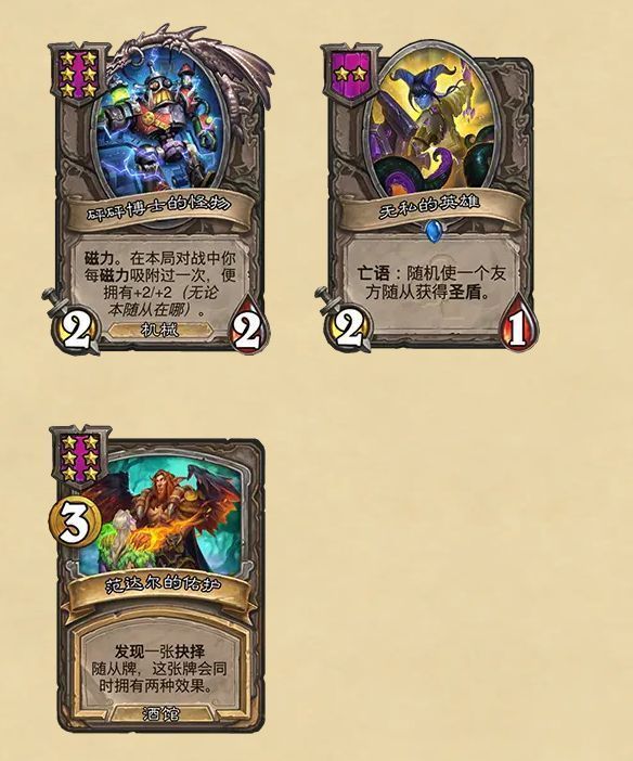 在接下来的一周内,我们会陆续公布更多关于移除的卡牌、新卡牌、回归卡牌以及卡牌更新的详细信息。更新补丁上线后,为了让玩家们能够逐步适应新的随从组合,各类型的随从将陆续加入游戏随从池。你可以在这篇博文的末尾查看完整的解锁时间表。