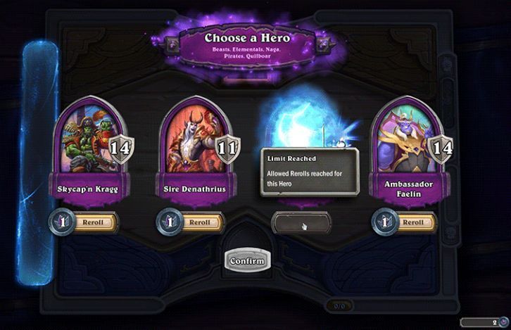 之所以限制每个英雄栏位的重掷次数为一次,是为了避免玩家们为了追求最热门的英雄而不断重掷,最终导致对局阵容变得过于雷同。通过将重掷设置为各自独立的(而不是一次性重掷所有英雄),可以让玩家们在找到喜欢的英雄时立即停止,而且对拥有4个英雄选项和2个英雄选项的玩家来说,重掷一次的机会同样宝贵。