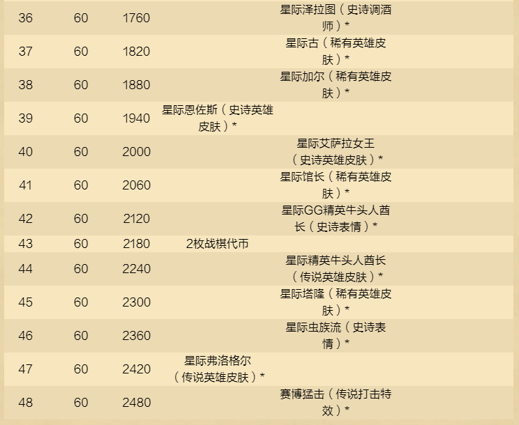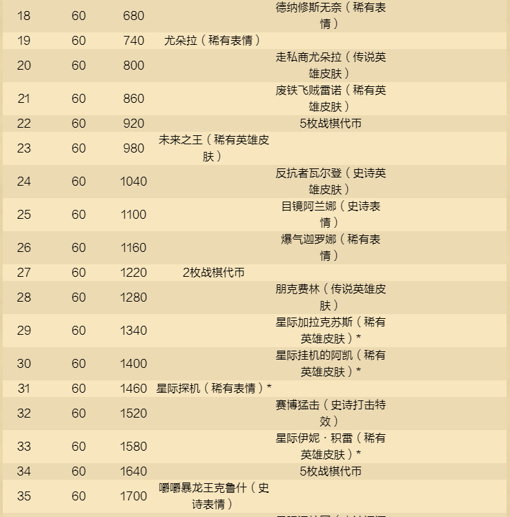 奖励路线各个等级的内容如下: