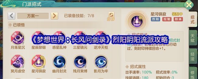 《梦想世界:长风问剑录》烈阳阴阳流派攻略