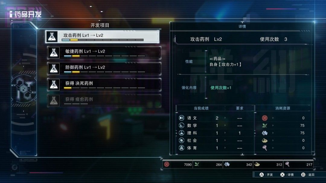 《百日战纪 -最终防卫学园-》中装备强化类的成就有很多,大学问家成就就是之一,而想要达成这个成就就得将任意药物强化至极限,在第30天,就会开放生物药品室,接下来在自由时间就能对屏障设备进行开发强化。
