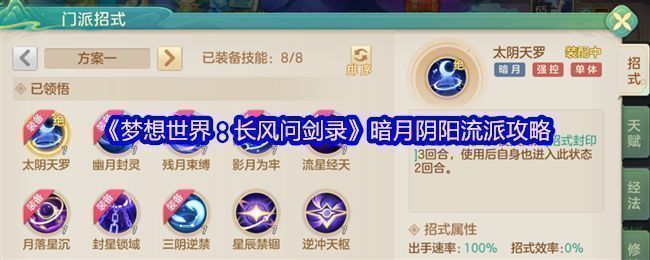 《梦想世界:长风问剑录》暗月阴阳流派攻略