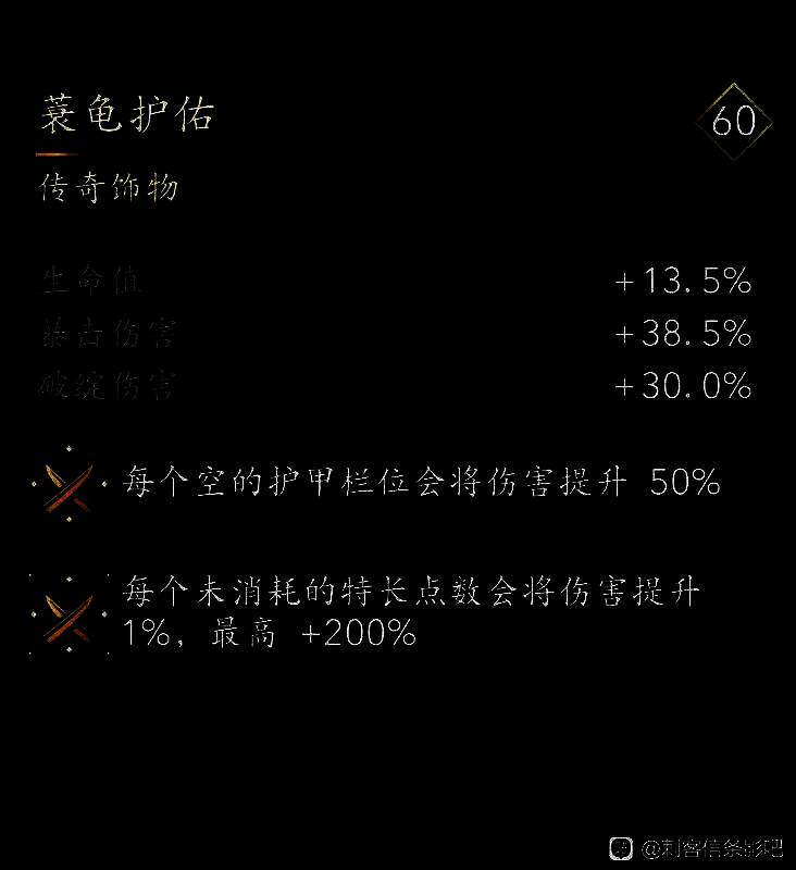 传奇铭刻词条——每个空的护甲栏位会将伤害提升50%,获得方式: