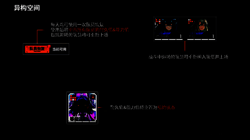 异构空间中,总队长将使用拥有的队员在血量归零前尽可能挑战不同限制的关卡,完成关卡后将会获得养成材料、微晶、粲晶等奖励