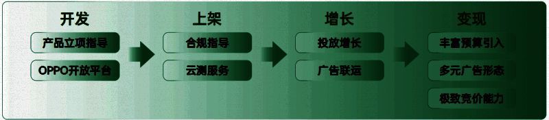 作为广告联盟平台,OPPO广告联盟当前为各行业媒体提供广告变现服务,支持包括应用APP、游戏APP、快应用、H5、小游戏等多种形态媒体接入,覆盖4.2亿DAU,日均请求量超过130亿。在传统广告变现服务之外,OPPO广告联盟也始终重视打造长效健康发展的开发者生态,通过立足终端生态,OPPO广告联盟为开发者提供覆盖开发、上架、增长、变现的全链路商业经营服务。