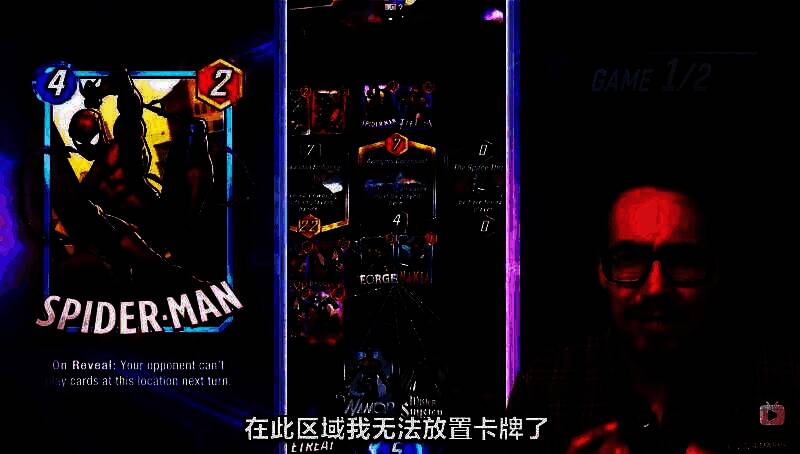 不好!对手第四回合时在复仇者基地放置了蜘蛛侠,这样下一回合Ben Brode就没办法在这个区域放置手牌了。但是第五回合时,区域又限制了Ben Brode只能在这个区域放置卡牌,这意味着Ben Brode将会完全放弃第五回合,真是一套漂亮的Combo!