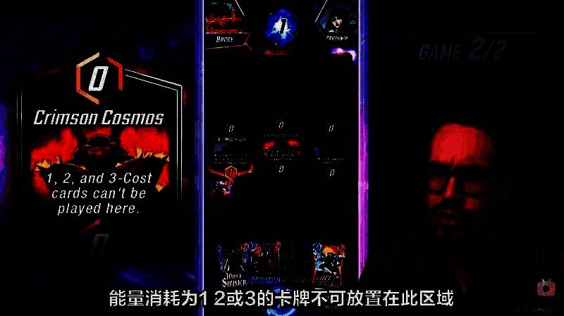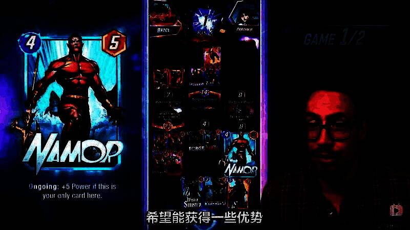 第六回合,Ben Brode只能将纳摩放置到太空王座上,纳摩在某个区域内,如果只有他一张牌,则会增加五点战力。到了狭路相逢的时刻,对手也非常可能在太空王座放置一张大战力的卡牌来取得胜利。值得一提的是,最后一回合魔方数将会翻倍,如果你觉得自己可能会失败,那就可以选择撤退。