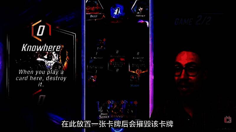 第三个区域是虚无之地,这个区域当放置卡牌的时候,就会摧毁这张卡牌。这对于BB来说真是太幸运了!因为在前一个回合,BB就在这里放置了勇度,没有受到区域的效果,而对手很有可能无法在这个区域放置任何一张牌!
