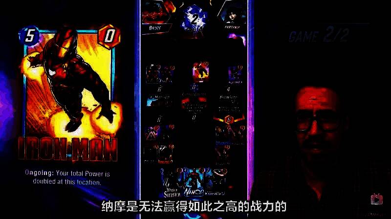 第五回合,对手在这个区域放置了钢铁侠,钢铁侠会翻倍这个区域内所有友方卡牌的战力,那么如果对手在最后一个回合中放置了浩克等强大的手牌,战力就会翻倍到22甚至更高,纳摩是无法赢过的。对手在此时也点击了SNAP!看来对手手中可能会有一张强大的手牌,保证他能在深红宇宙的拼点中取得胜利…