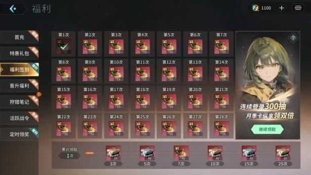 3、月卡福利:开服首月期间,指挥官只要购买月卡或季卡,即可享受签到300抽双倍领取的福利活动;此外,如果月卡和季卡同时激活,将自动升级为永久卡