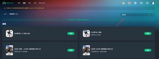 第三步:点击【游戏】界面,点击上方的搜索栏,搜索【逆水寒】就可以找到该游戏了。
