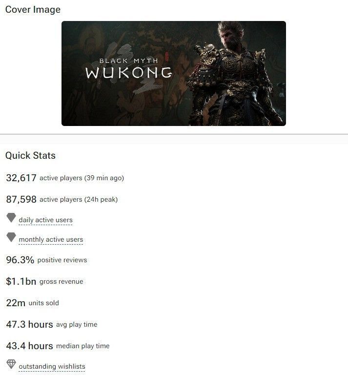 这只是Steam平台的销售情况,如果考虑到其他平台的销量,《黑神话:悟空》的总销量将会更高。