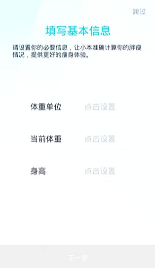 1、首次运行使用体重小本app时,系统会让你填写当前体重和身高的信息;