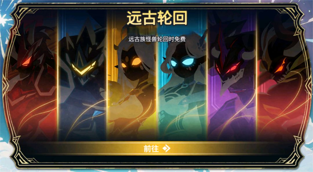 无尽的远古族轮回,体验一切皆有可能!活动期间,远古族怪兽轮回时免费。