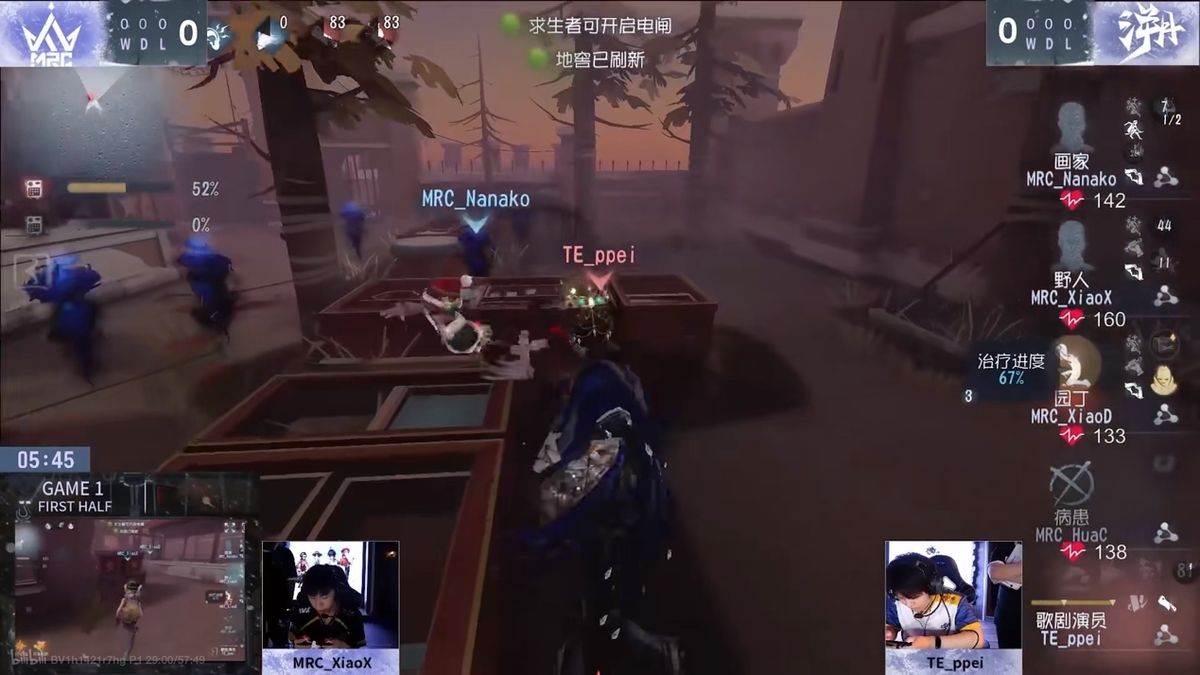 第三天,TE vs MRC第一局上半局,MRC求生者巧妙运营成功保平: MRC_HuaC病患开局在终点站牵制高熟练度歌剧演员,MRC_HuaC提前下掉两块关键板逼歌剧演员断影跃,争取到时间使用钩爪转进双窗区,又续钩爪跃过活木马成功进入两板一窗,稳健博弈,三钩无失误进入三板区,后极限身距砸板命中歌剧演员,上椅时密码机进度三台。二救后密码机进度不够,MRC_HuaC选择倒地下室拖时间。MRC求生者选择多开一台密码机,园丁上椅后密码机压好。MRC_XiaoX野人假意失误过半秒救,实则为自己制造走地窖的机会,监管者只要选择挂上园丁,野人就可以走地窖。歌剧演员面对续盾抗刀后故意倒角落的园丁,意识到求生者的计策,直接传送点门的画家,追求速抓后回溯。但是MRC _Nanako提前下了双板并拉走防传送,翻板后马上作画,短板博弈成功后又极限秒放画,顶住压力牵制了关键的20秒,歌剧演员已无法回溯,MRC求生者成功保平。