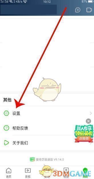 1、进入爱奇艺极速APP【我的】界面,接着点击【设置】。