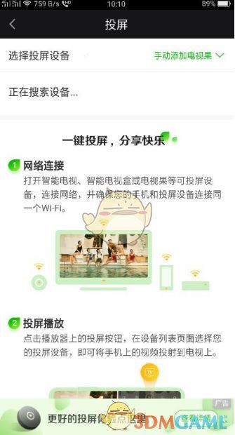 用户需确保手机和电视连接到同一个Wi-Fi网络,然后打开爱奇艺极速版APP,进入“我的”页面,点击设置,找到并点击“投屏”选项,之后手动搜索设备或让系统自动匹配电视设备,选择相应的电视设备后即可成功投屏。或在视频播放界面点击投屏按钮进行投屏操作。