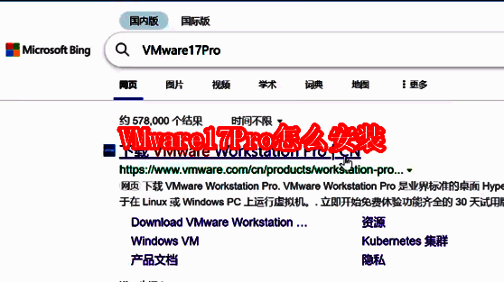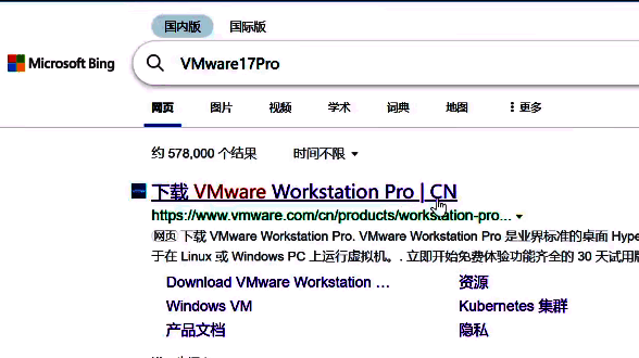 1、在浏览器中搜索"VMware17Pro",点击进入官网。