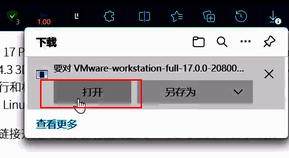 3、下载完成后,在右上角弹出的窗口中点击"打开"按钮。