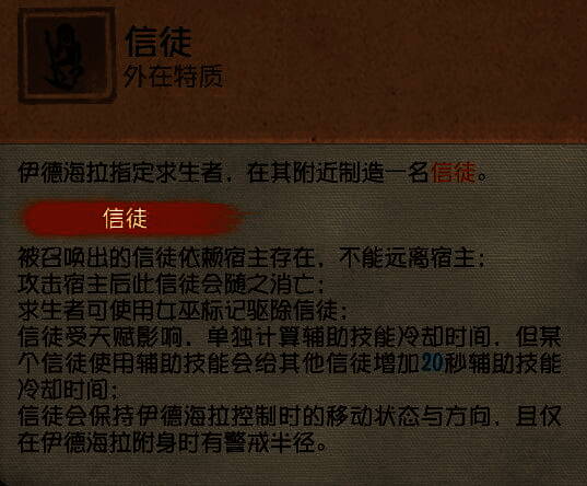 ①梦之女巫寄生求生者产生的信徒以该求生者为宿主,并拥有互相透视、超距加速跟随等特性;