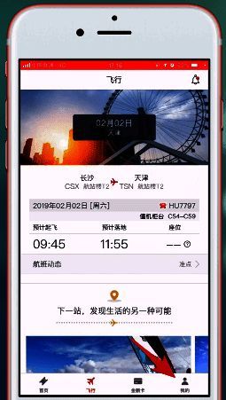 1、打开海南航空app,然后点击【我的】;