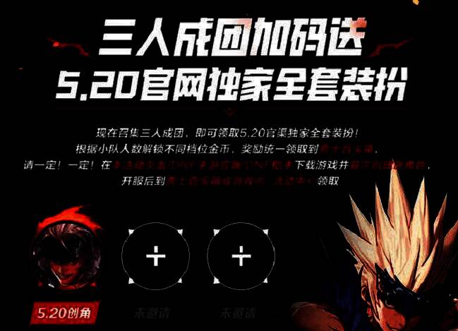 勇士们与两位好友组队,三人成团,即可获得5.20官网独家全套装扮:武器装扮+光环+头像框+聊天框4件套!走在大街上,你就是最靓的那个仔!