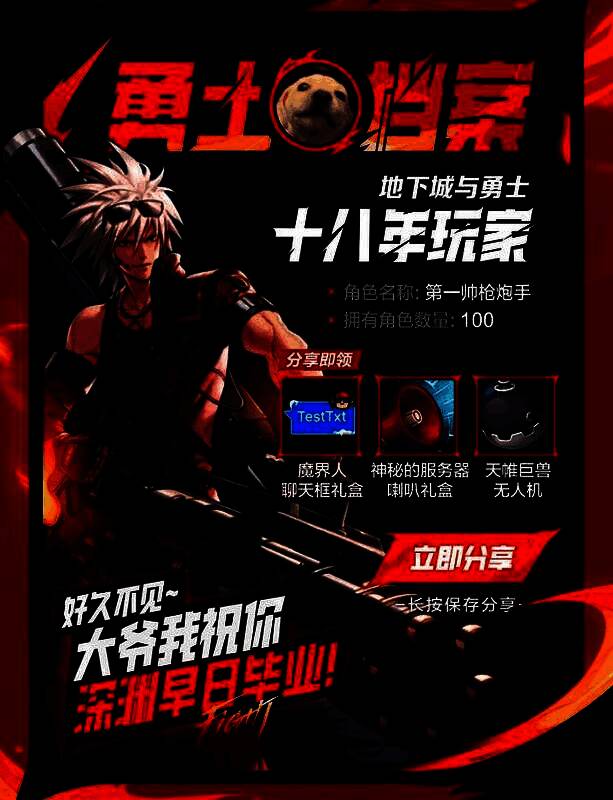 将自己的勇士档案分享给好友,还可以获得专属魔界人聊天框礼盒等奖励。