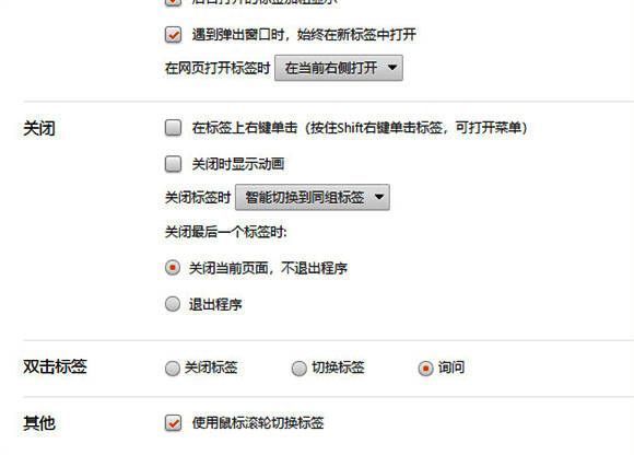 5、在页面中找到其他选项,可以看到【使用鼠标滚轮切换标签】功能,将其进行勾选即可。