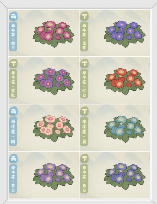 在桃源深处有人家游戏新版本花圃新增可培育花朵:牵牛花、凤仙花,每种花各自可以培育10种颜色。下面是桃源深处有人家牵牛花育种配方大全,牵牛花花色获取分享,详情可看下方分享!