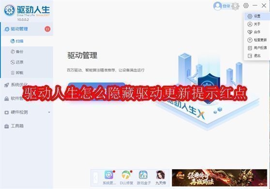 驱动人生隐藏驱动更新提示红点教程