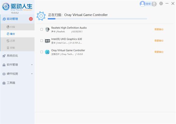 3、切换到备份页面后,会自动扫描需要备份的驱动资源。