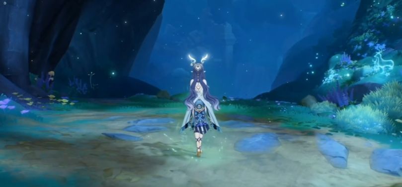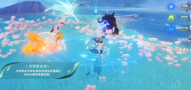 根据消耗数量,每个草露还能获取1层“月咏”,长按使用元素战技,可通过该方式使用3个草露;在元素战技或其他招式攻击命中,敌方草元素和水元素抗性会降低。在拥有“月咏”时使用元素爆发,或在使用后15秒内获取月咏,会将其使用掉,并根据层数,每层能获得6层”苍色祷歌”。