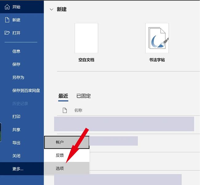2、接着点击新界面左侧栏"更多"中的"选项"。