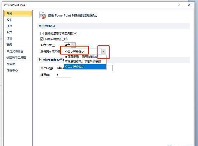 3、然后找到右侧中的"屏幕提示样式",点击选项框的下拉按钮,最后在下方给出的列表中选择合适的选项就可以了。
