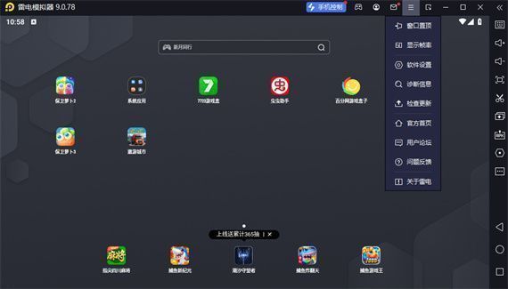 2、打开的雷电模拟器中找到右上角的菜单功能进行点击。