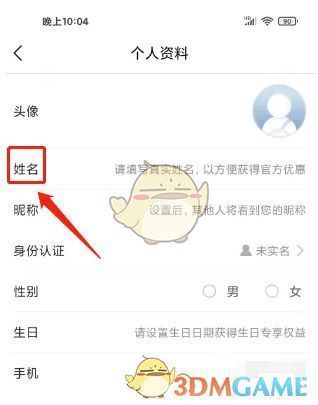 3、进入个人资料,点击【姓名】。