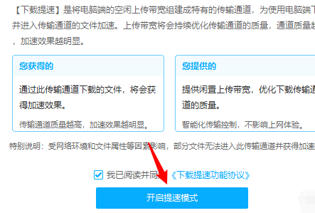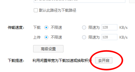 4、然后找到右侧中的"下载提速",点击"去开启"按钮。