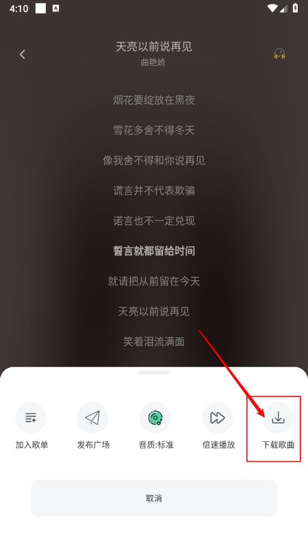 元力音乐怎么下载歌曲,进入首页,滑动选择或直接点击上方的搜索搜索歌曲,有多个搜素结果,选择喜欢的歌曲进入,在播放详情页点击如图三个点,弹出弹框后点击"下载歌曲",然后选择所需的音质进行下载,点击"下载管理"即可查看下载的歌曲。