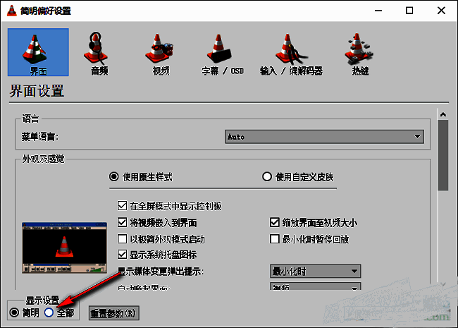 3、在打开的窗口界面中,将左下角"显示设置"一栏中的"全部"勾选上。
