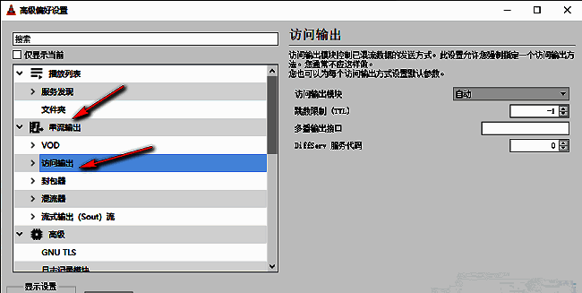 4、然后点击左侧"串流输出"一栏中的"访问输出"选项。