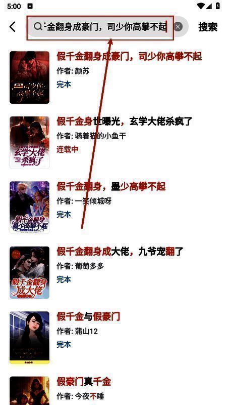1、点击搜索框输入需要查看的小说进入,如图所示。