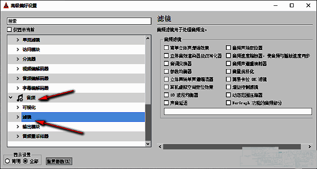 4、然后点击左侧"音频"选项中的"滤镜"。