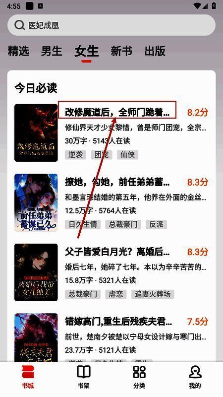 1、在本站下载安装软件后,在书城里面选择喜欢的小说进入。