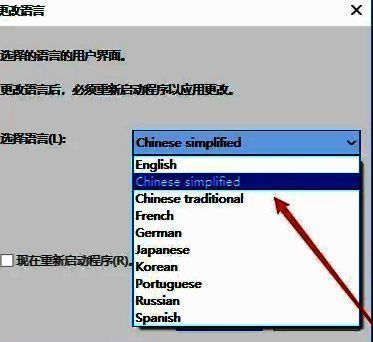 3、在打开的窗口界面中,点击"选择语言"右侧的选项框下拉按钮,最后在下方给出的选项列表中选择"Chinese simplified"就可以了。