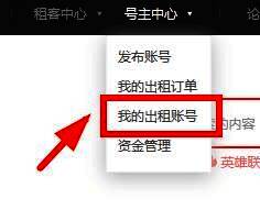 1、双击打开软件,点击上方菜单栏中的"号主中心",接着点击下方选项列表中的"我的出租账号"。