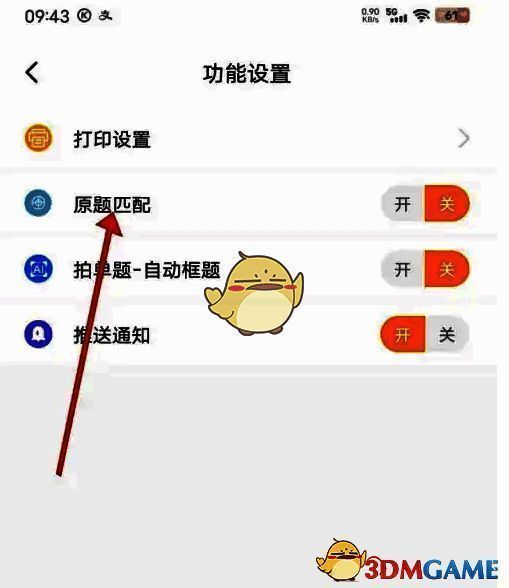3、最后进入设置中心后,点击上方‘原题匹配’,勾选右边的按钮,即可原题匹配功能开启成功。