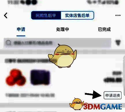 3、进入选择网购售后单选择商品,点击上面的申请退换选项。