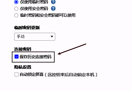 3、然后找到"连接密码"一栏中的"保存历史连接密码",最后将其小方框给勾选上就可以了。